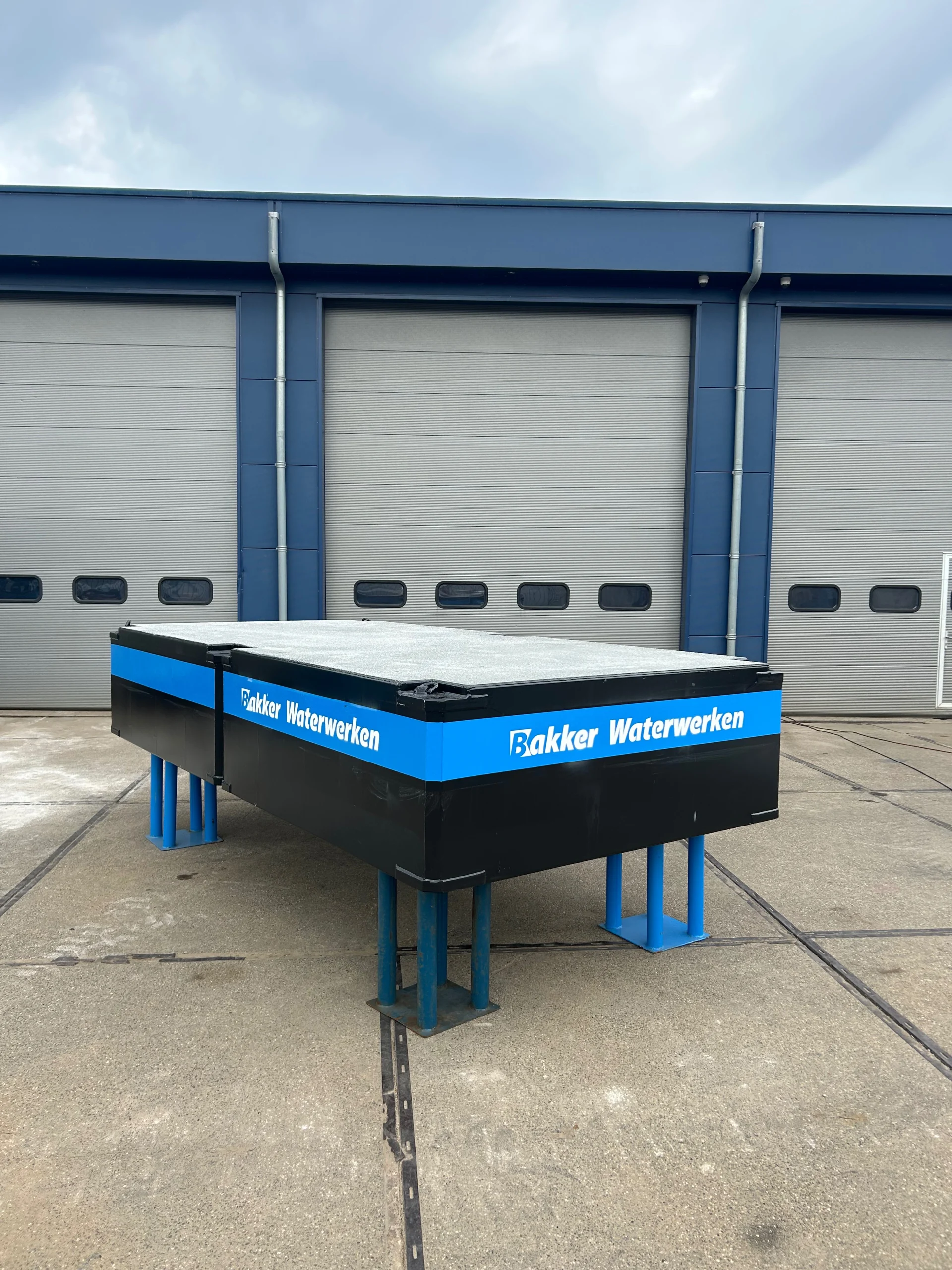 Deklast: 6 ton per vierkante meter Drijfvermogen: 3,5 ton per ponton met vrijboord 100mm Pontons voorzien van casco-keur Uitvoering mogelijk met spudpalen lengte 6 meter en met leuning CVO keuring.