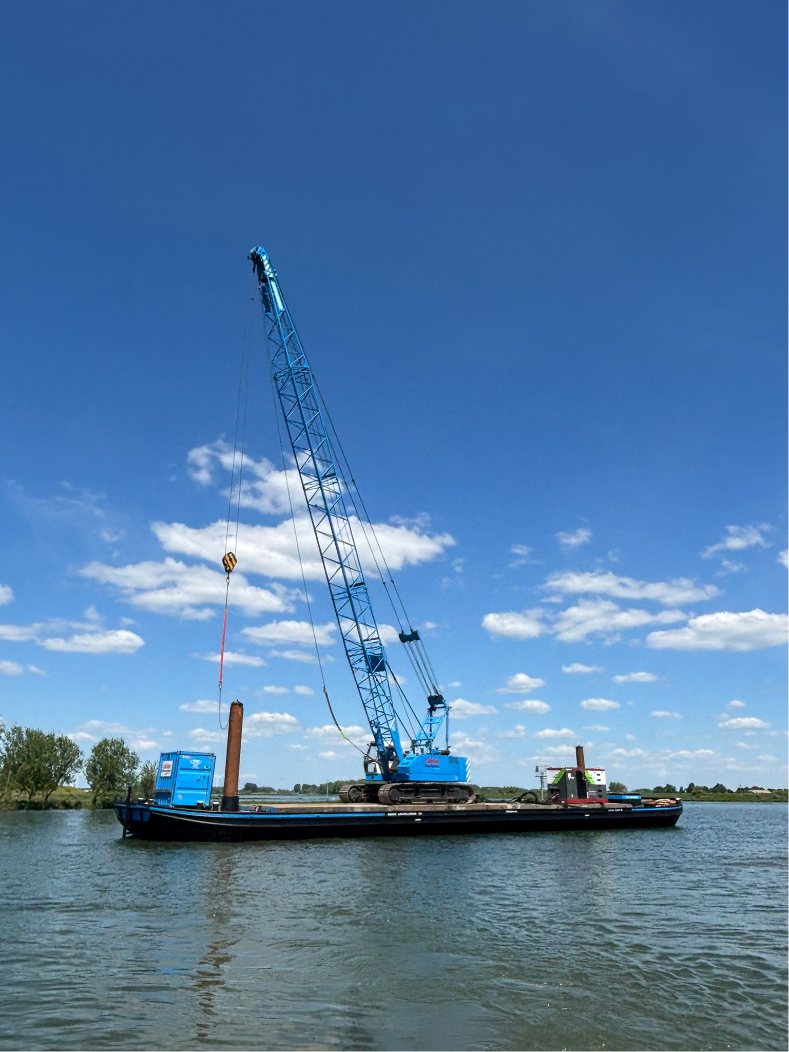 Voor L.J. de Wilde uit Vijfhuizen hebben wij in September 2018 het transport verzorgd voor het project Doespolderkade. Voor dit project moest al het bouwmateriaal (grasstenen, houten palen, klei) over het water aangevoerd worden. Dit verzorgde wij met onze eigen dekschuiten.